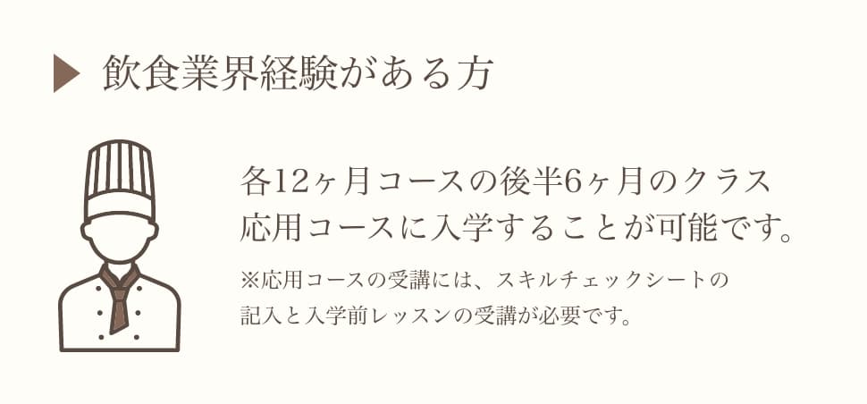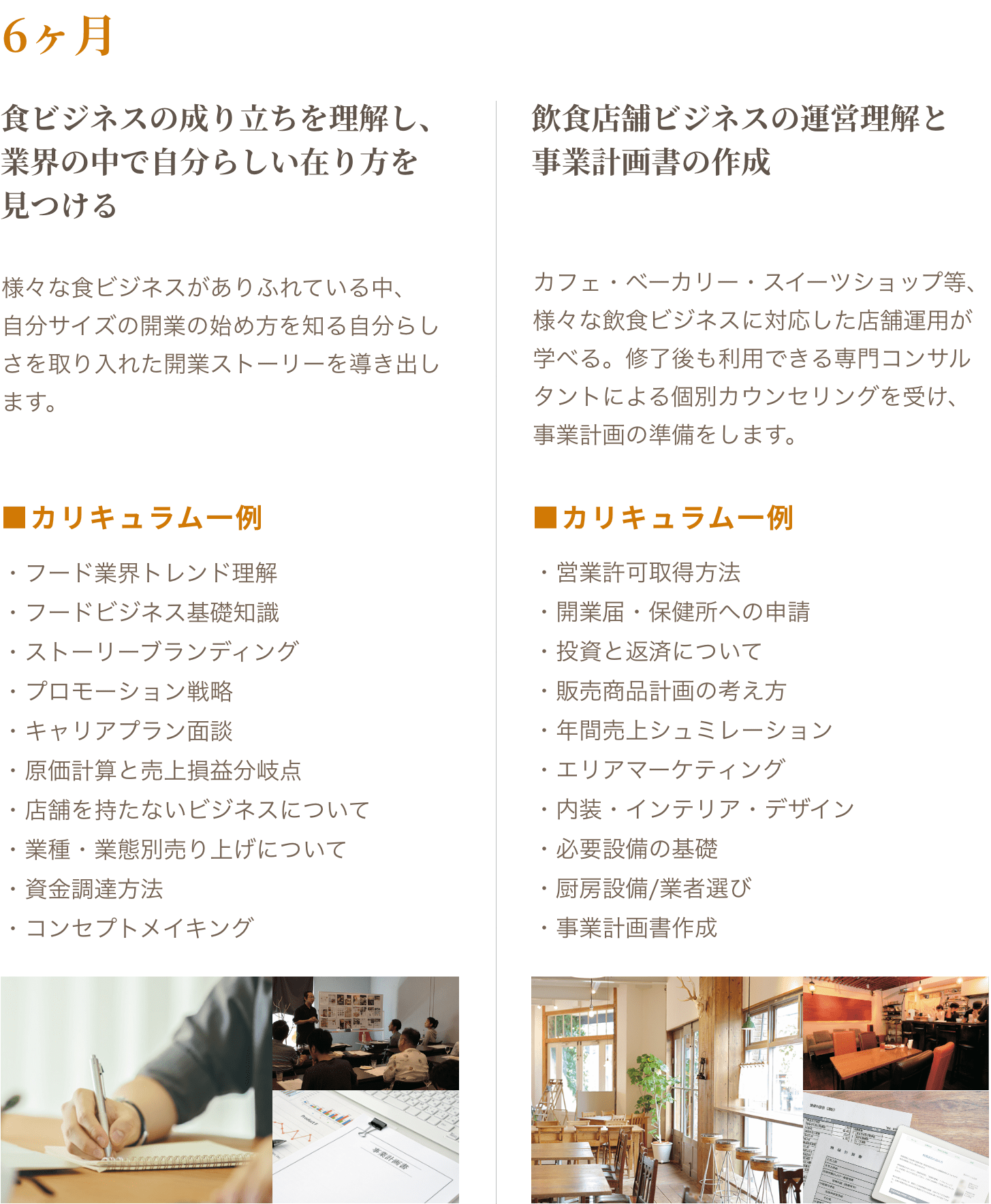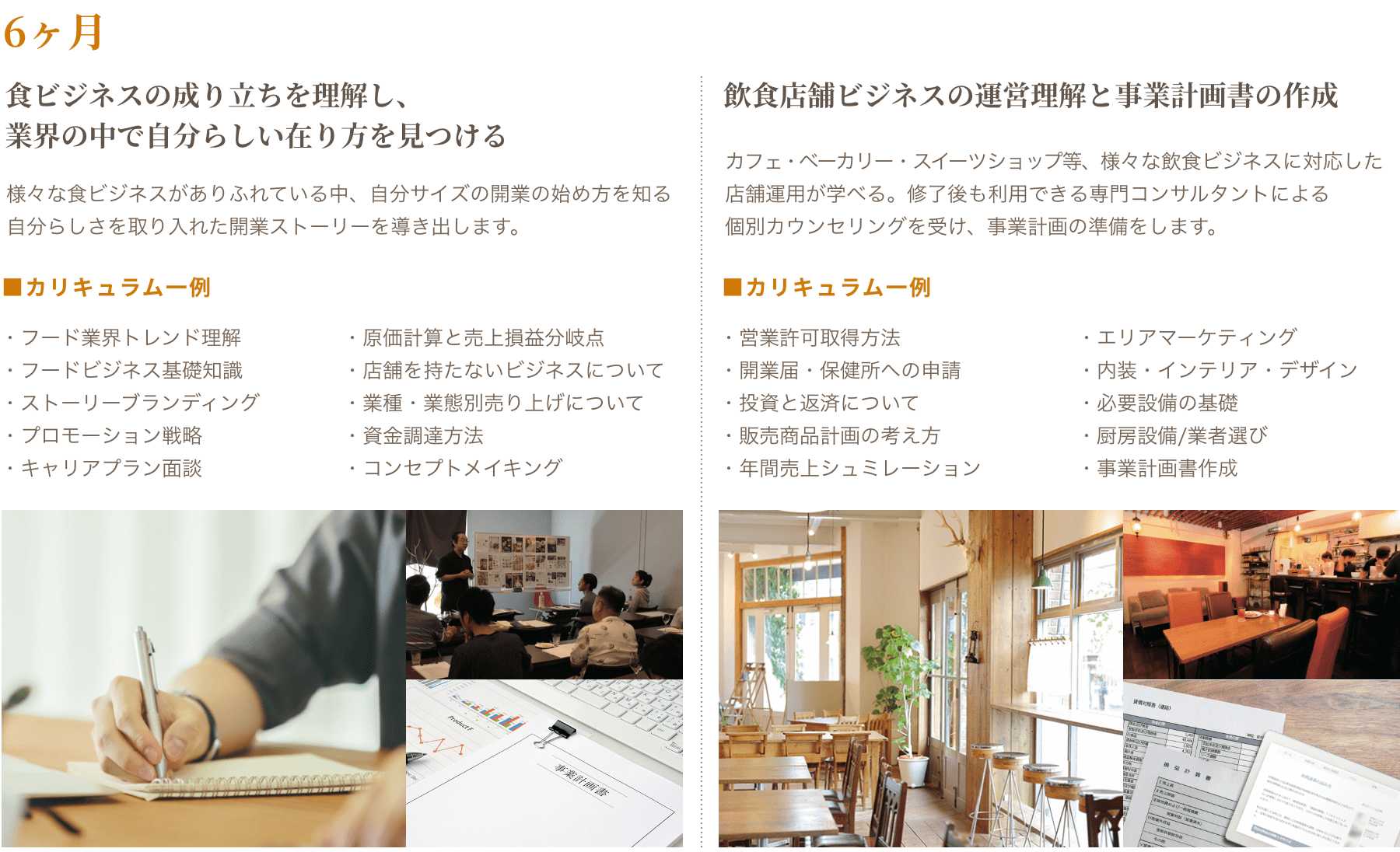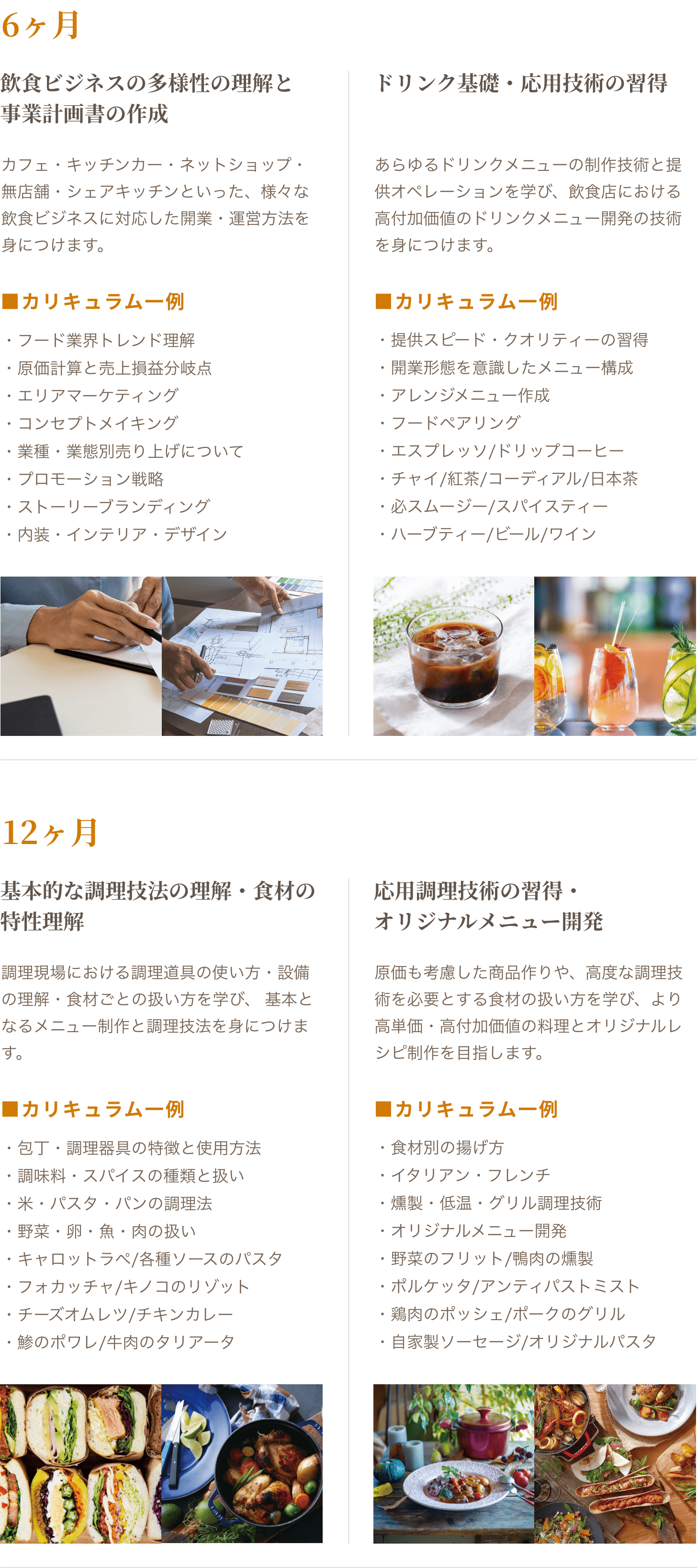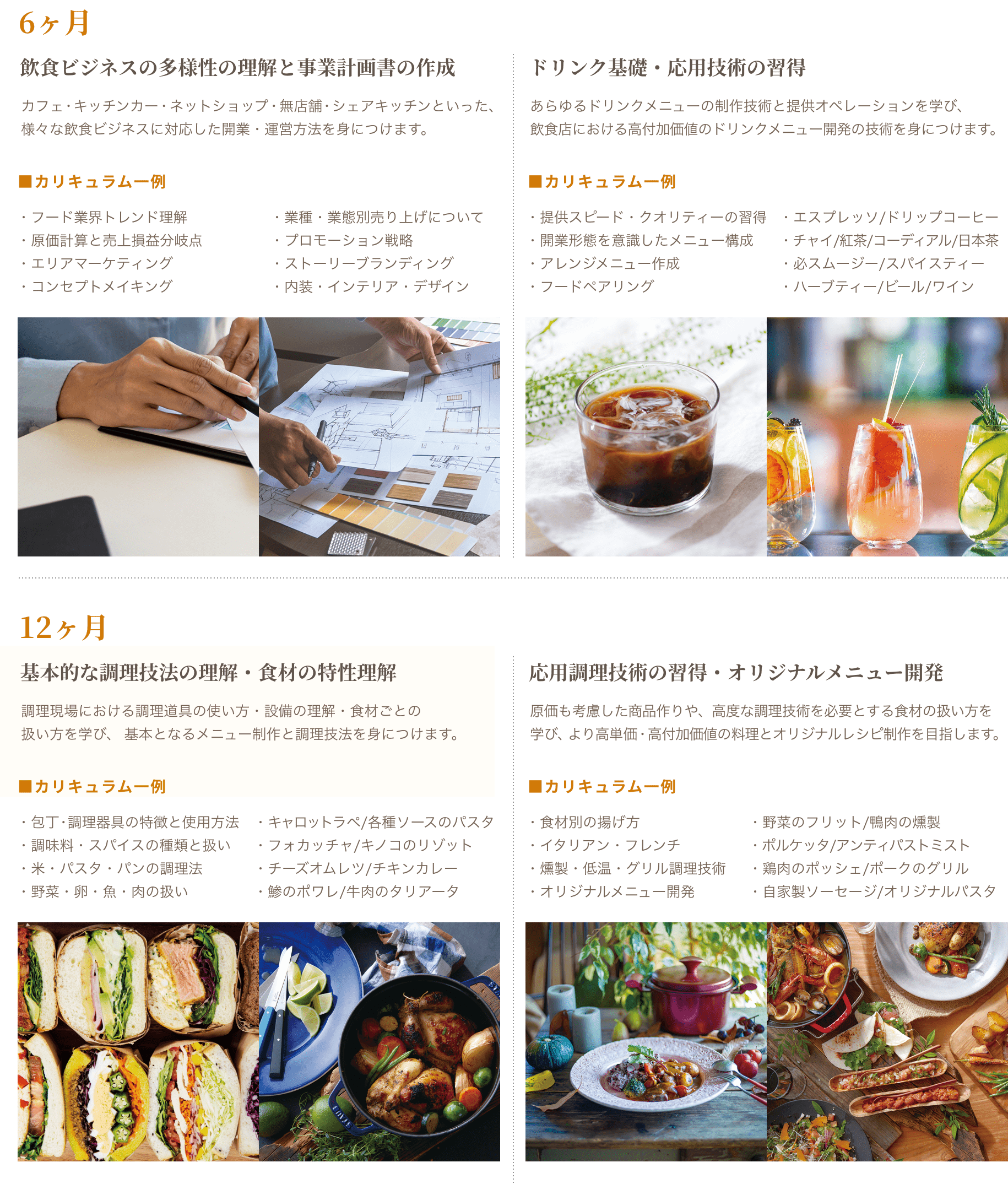 未経験から、自分のお店を持つための経営知識・飲食スキルを学び、”自分らしさ”を取り入れたお店づくりの企画を創造する力を身につける。