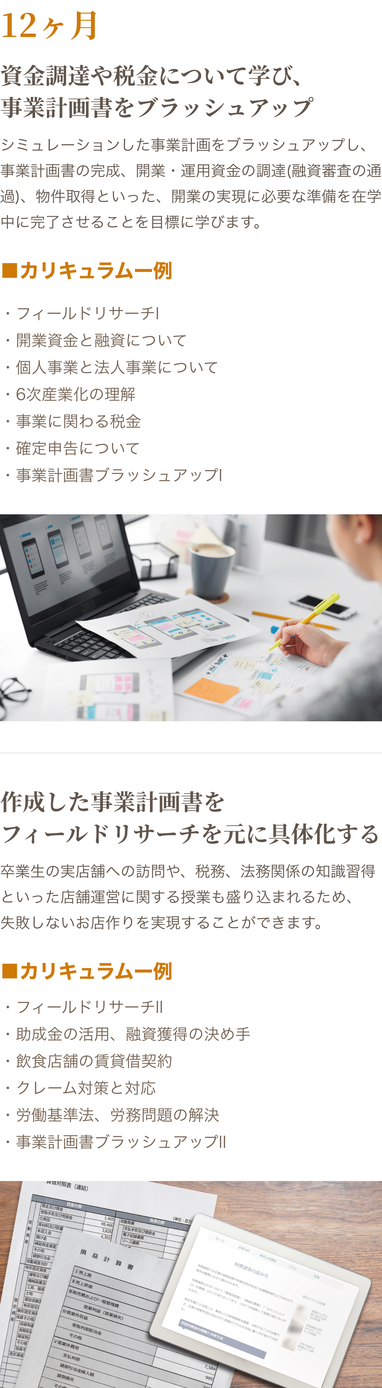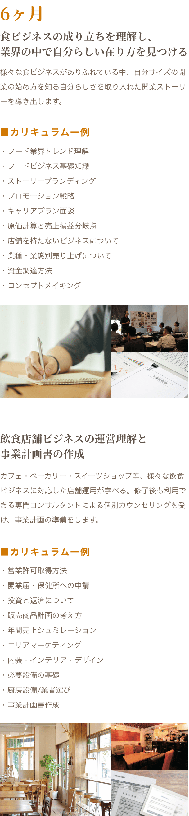 現代のニーズに合わせた飲食店を設計できるように、様々な飲食店の実例をもとにブランディング・事業計画・店舗設計を学び、自分らしい飲食店開業を目指す。