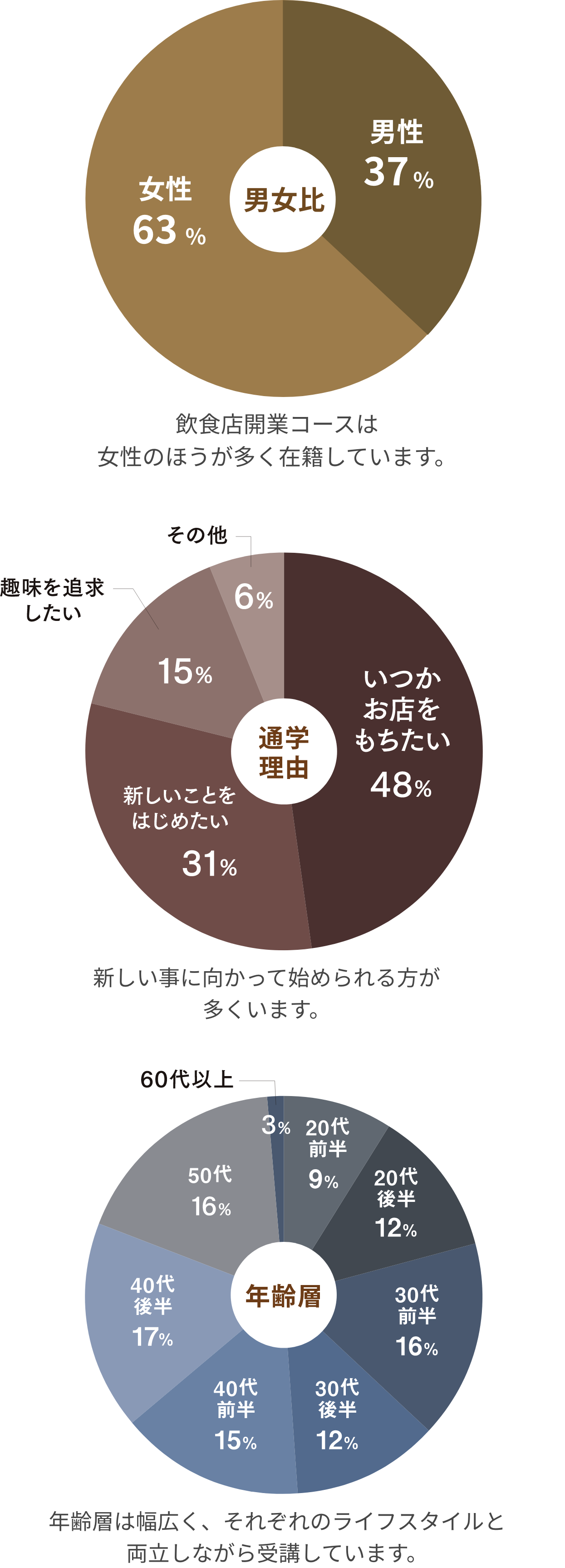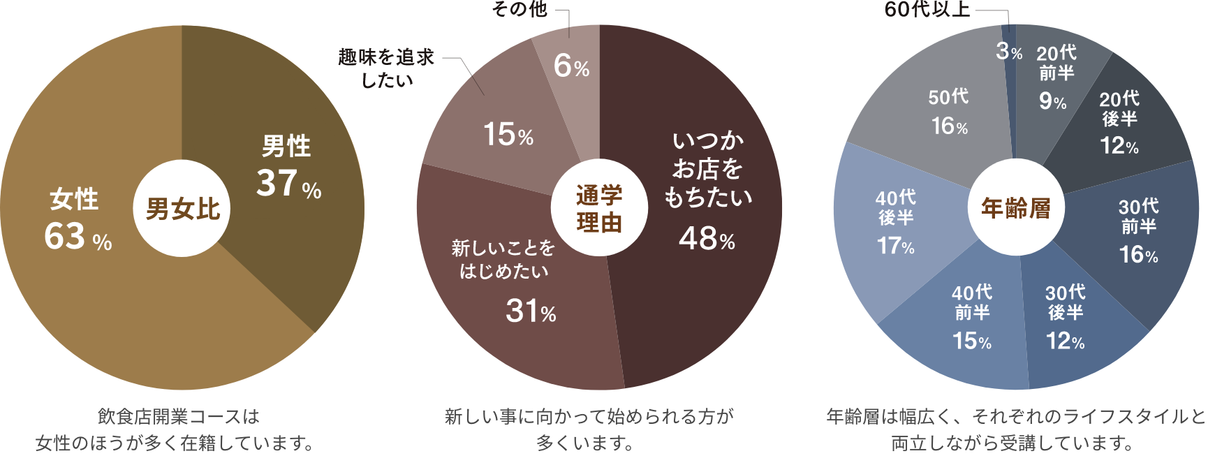 職業や通学地域、年齢など幅広い方に通学していただいています。